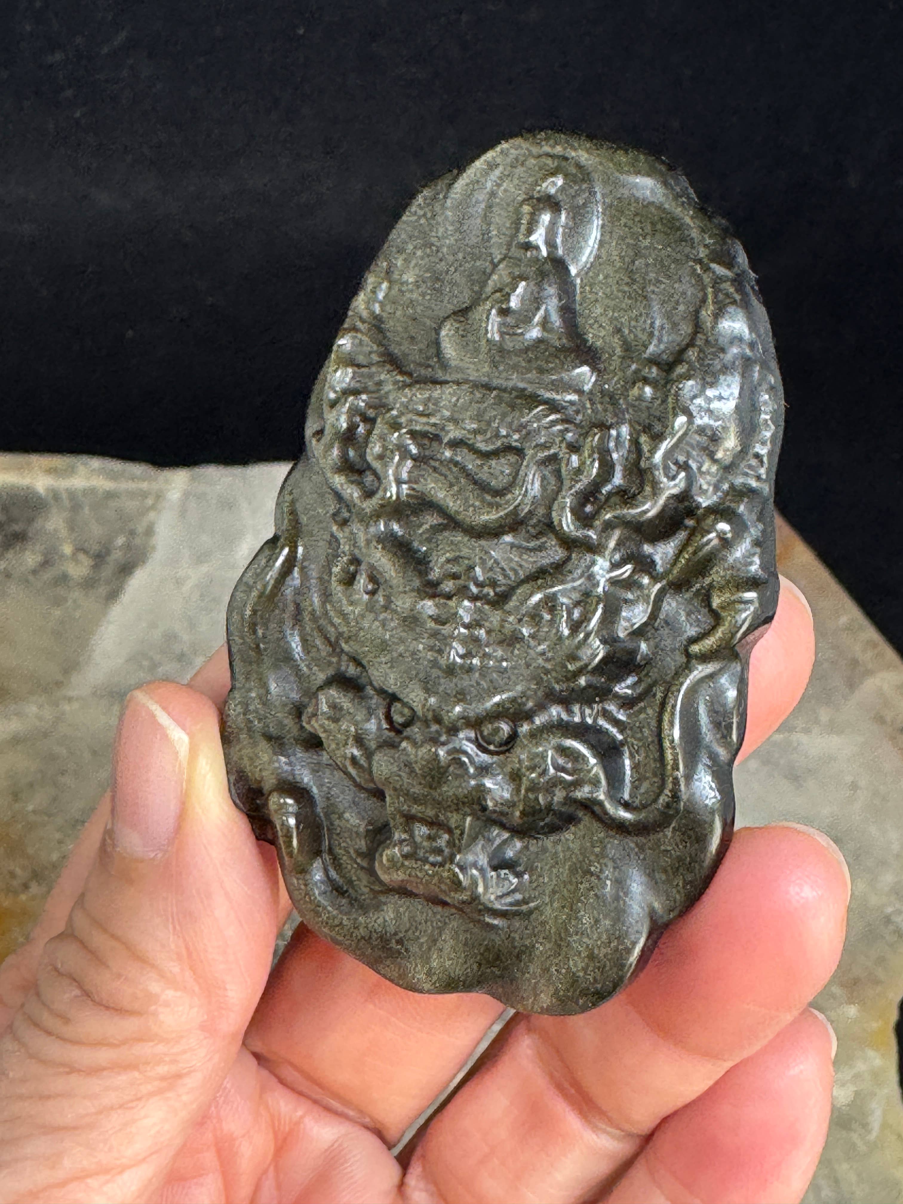 3pc Serpentine Leo All seeing third eye pyramid carving F428