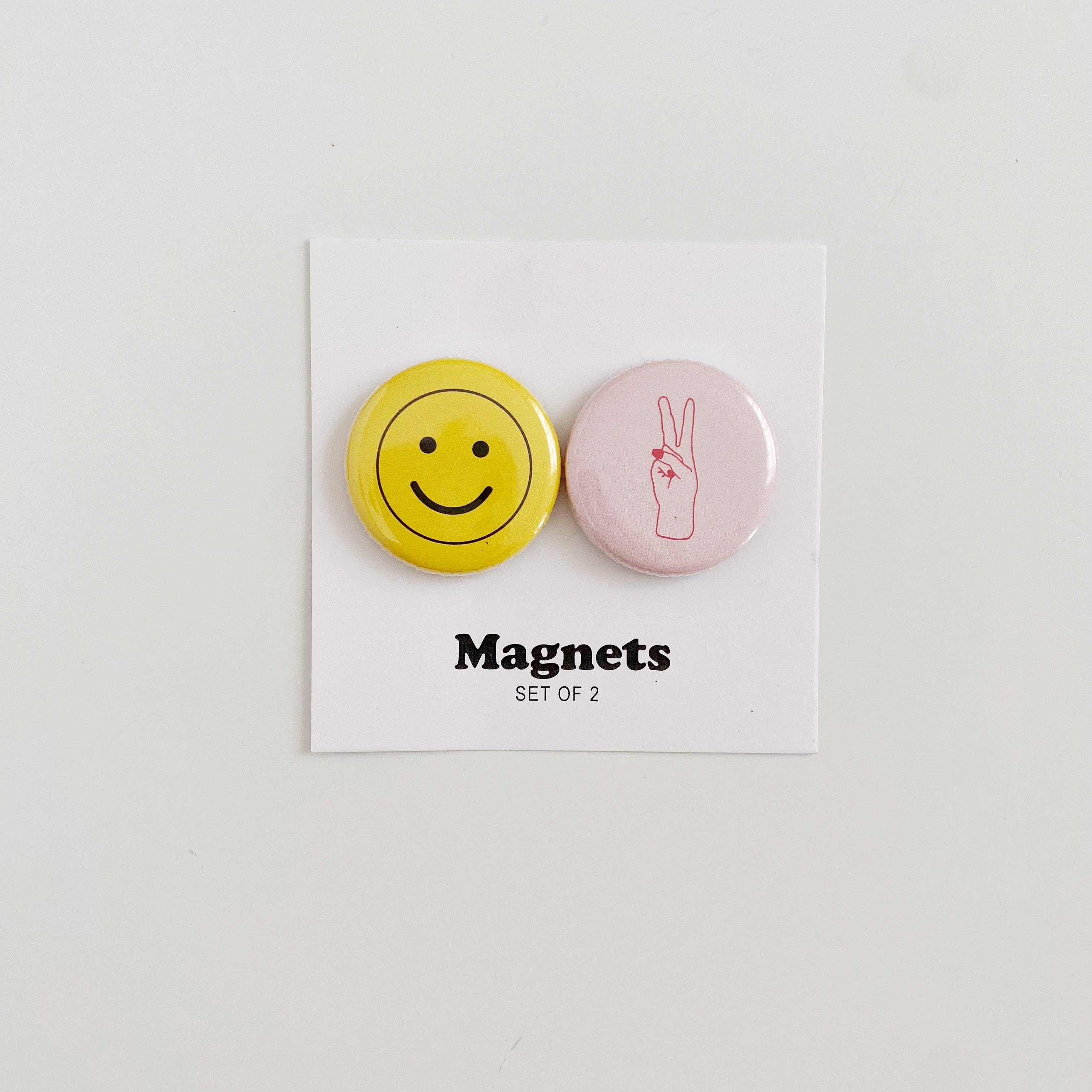 Handpicked Goods presents the Smiley Face Magnet Pack. This delightful set of 2 magnets will add a dash of cheer to any metallic surface. Each magnet is carefully crafted to ensure durability and longevity. Great for personal use or as a thoughtful gift, these magnets serve as small reminders of joy in everyday life. Enjoy the quality and creativity that is synonymous with Handpicked Goods.