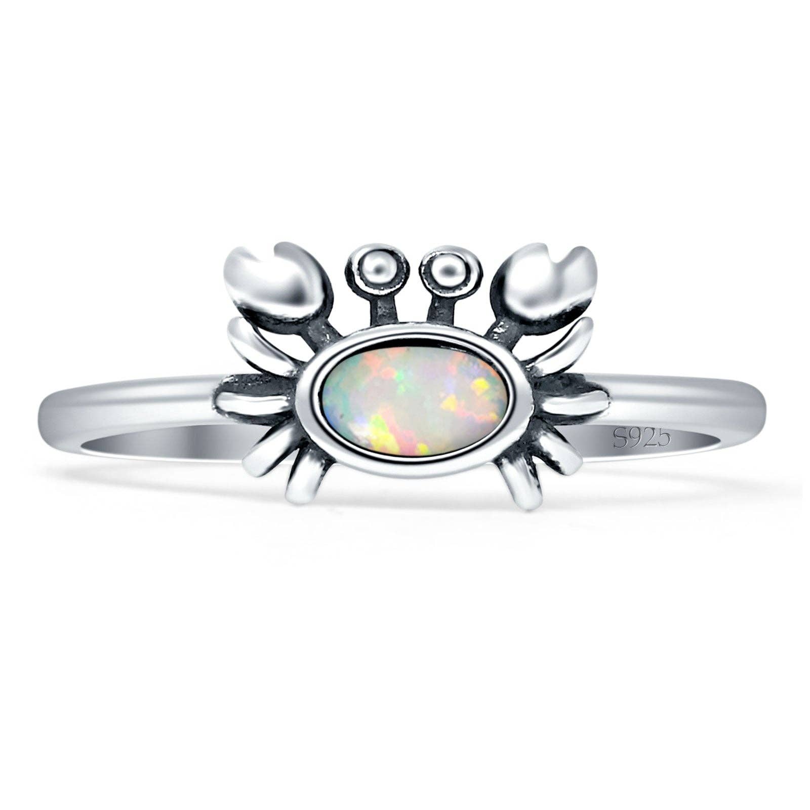 ☉ Metal Type: Sterling Silver. ☉ Metal Stamp or Hallmark: .925 ☉ Metal Purity: 92.5% Sterling. ☉ Gemstone: Created White Opal ☉ Gemstone Creation Method: Simulated ☉ Face Measurements From South To North: 13mm(0.51") ☉ Center Stone Measurements: 5mm(0.19")