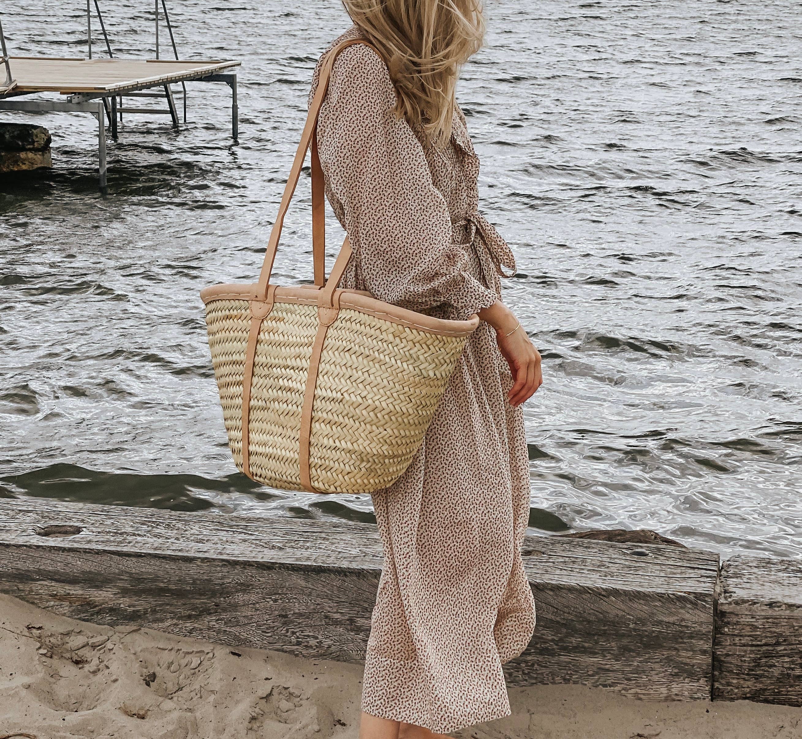 Beautiful market bag/basket to add storage and warmth to your space. Place it in your living room to keep your firewood log; and blankets and it can be a pet bed; The market bags are also in your kitchen/pantry to store fruit or vegetables. Market straw bags are a timeless design that has been present for centuries thanks to their durability and easy maintenance. This product is hand-made in Spain with sustainable esparto grass (straw). The material is flexible; so you can give a round or oval shape to your basket. Approx Size: SMALL: 18"L x 18"W x 7"H / "45cm L x 45cm W x 18cm H MEDIUM: 20"L X 18"W X 9"H / 50cm L x 45cm W x 23cm H LARGE: 23"L X 30" W X 10"H / 59cm L x 76cm W x 18cm H All sizes are approximate