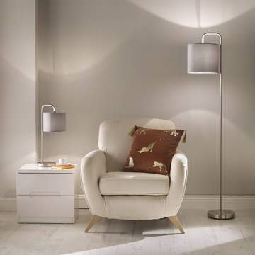 Add a rustic touch to your space with this 32" tall table lamp, handcrafted in Thailand from reclaimed teak wood. The natural beauty of the teak post base is complemented by an 18" wide, 9" tall linen shade, providing a warm and inviting glow. Perfect for enhancing the charm of any room with its organic and elegant design. wooden black base 8" wide and 8" deep linen shade 16 wide, 9" tall Completely assembled 32" tall One light socket 60 watts max Scandinavian designed and made in Thailand