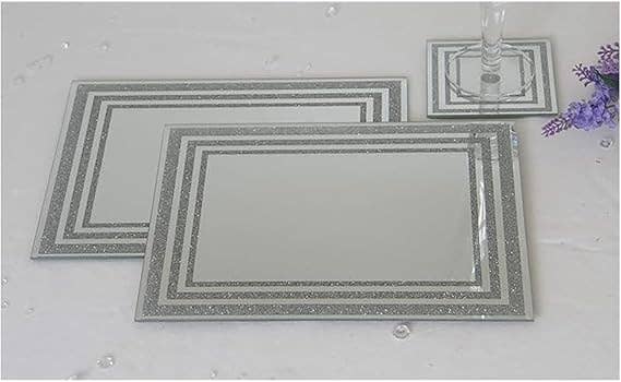 Line Center Glitter Sparkling Range Set, 4x Place Mat 4x Coaster 1x Round Shape Candle Plate Glittery Effect Look Amazing Ideal Gift Contemporary Mirrored Glass Candle Plate Coaster Set with a Glittery Effect Perfect For Parties Wedding or In Your Home Main Color: Silver ( Select Package: 4x Placemat 22 X 29, 4x Coaster 10x10cm, 1x Centre Plate 20cm Dia)