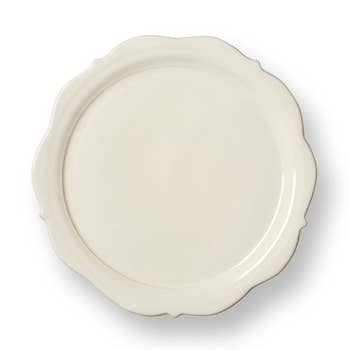 Beautiful cream color with antique like aging add old world charm to any room or table with our Scavo collection. Italian ceramic. Hand made in Italy. Eating surface is glazed and safe for food, unglazed portions are NOT food safe. Hand wash only. 14" D