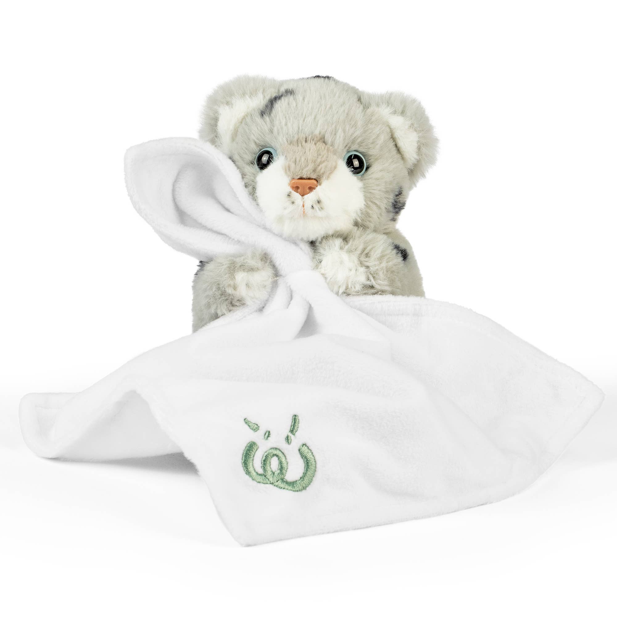 This approximately 14" x 14" baby cuddle lovie includes double sided soft cuddle fabric trimmed with a generous satin ruffle that the babies love to snuggle with! Made in USA.