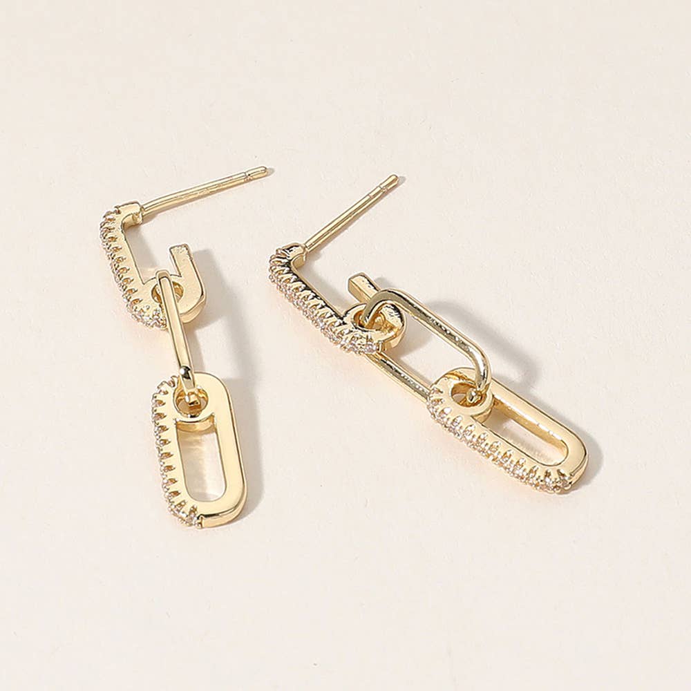 14K Gold Dipped CZ Stone Paved Paperclip Chain Drop Earrings