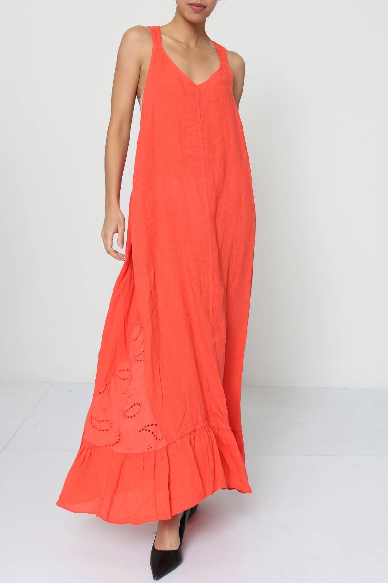 Sleeveless long dresses for women in 100% linen