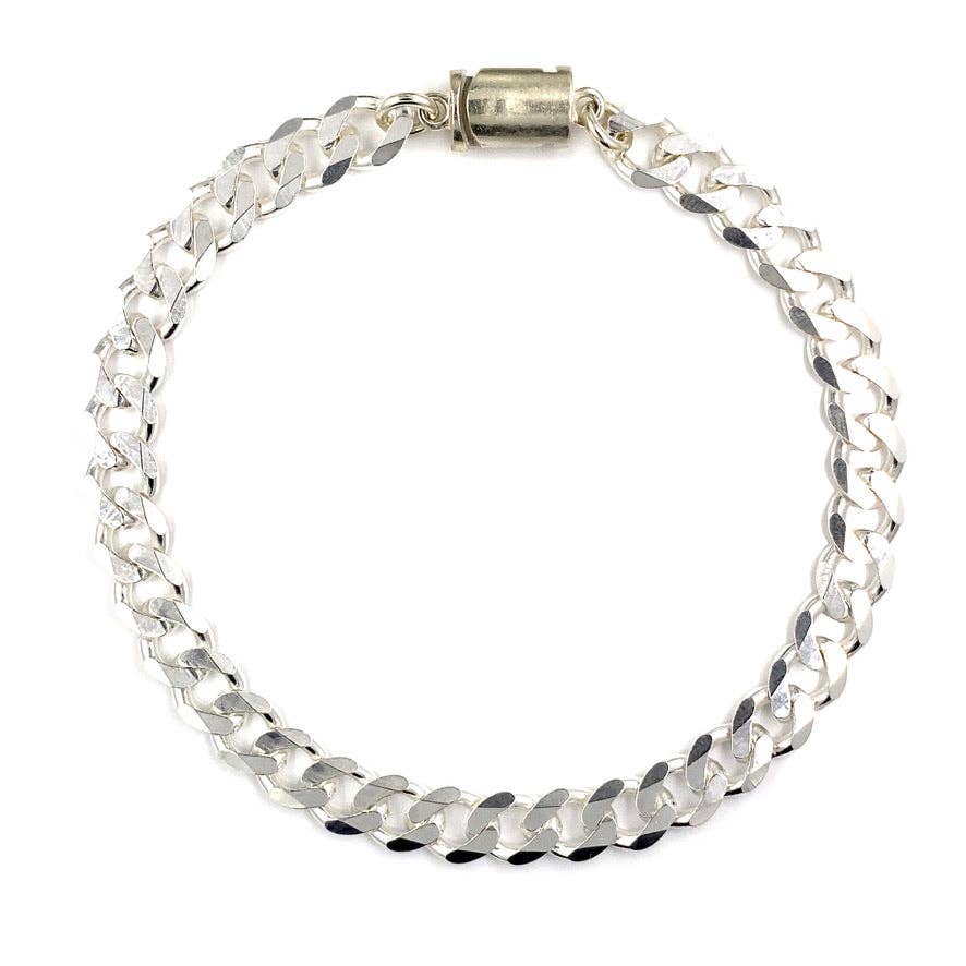 Prepare to turn heads with this stunning 7.5" sterling silver Byzantine bracelet that's all style, zero heaviness. The intricately woven design features hollow links that create that coveted substantial aesthetic without weighing down your wrist. Each piece showcases a mesmerizing pattern of interconnected jump rings that flow with impressive flexibility. Finished with a fine silver plating for that brilliant white shine and built-in tarnish protection, this bracelet is the perfect statement piece that looks expensive but feels feather-light. As opposed to typical magnetic clasps, our's stays secure and will not inadvertently pop apart until you decide to take it off. Some awesome features of the Freedom Clasp: ✓ It's EASY to use. Simply pop it on - and twist it off! ✓ It's ideal for people who typically require assistance from others to wear traditional jewelry clasps. ✓ It's easy to use with long nails. ✓ They greatly make wearing jewelry easier for those who suffer from arthritis and other dexterity issues. ✓ They stay securely intact while worn, so you don't run the risk of losing your jewelry. HOW TO USE: Using the Freedom Clasp on a Necklace - Just Give It A Twist With two fingers, twist the clasp open by rotating each side of the clasp in opposite directions. Using the Freedom Clasp on a Bracelet - Pop It Open With Your Nail Apply tension on the bracelet by pulling it away from your wrist. Then, insert your nail into the groove on either external side of the clasp and apply pressure to pop it open. See Video Demonstration Specs: Chain Style: 8MM Byzantine Length: 7.5" Metal: Sterling Silver Color: Silver