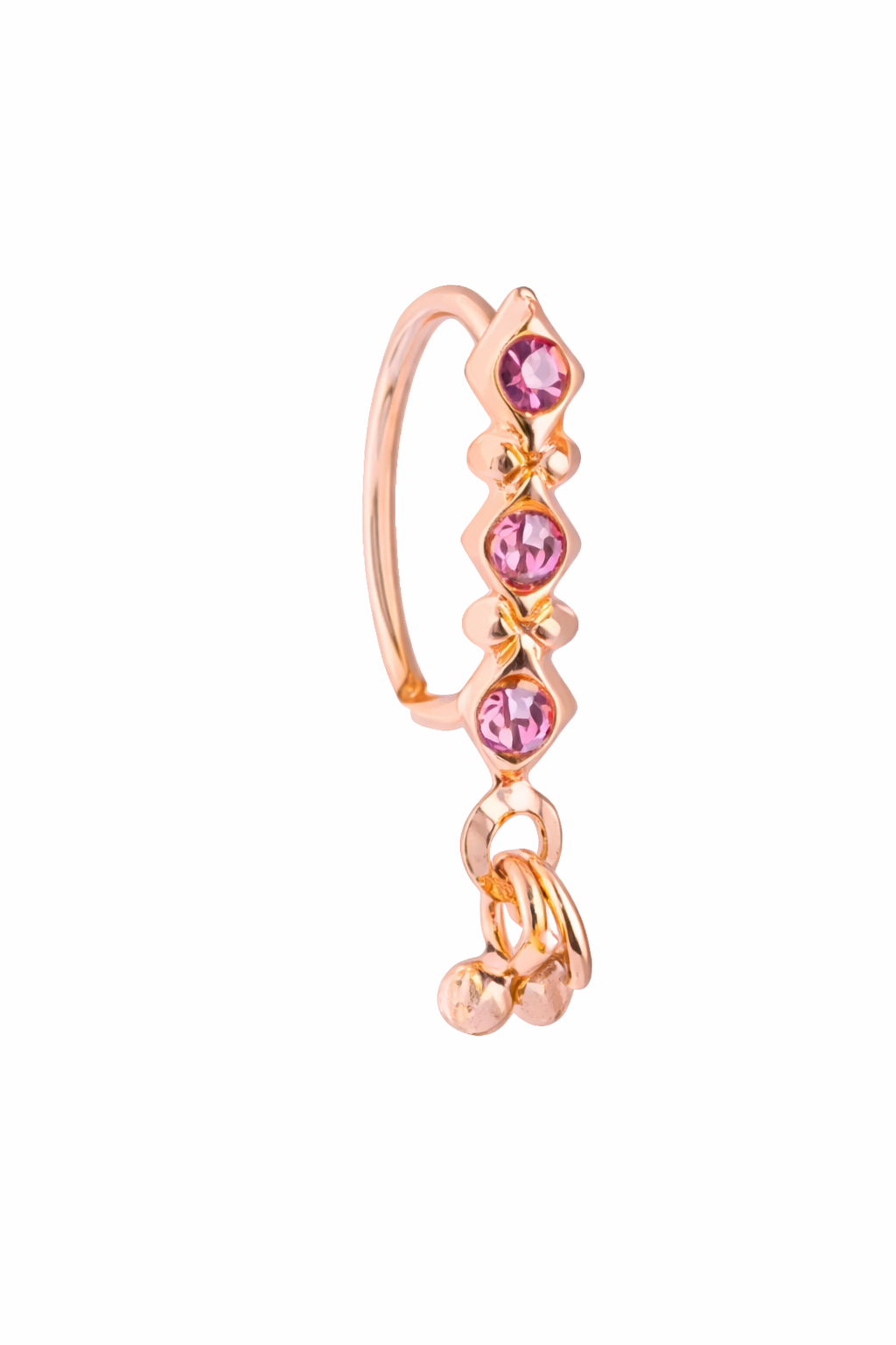 Radiant and refined – this gold-plated triangle cluster nose pin is designed to bring a modern sparkle to your look. Made in 925 sterling silver with a polished gold finish, it features a trio of shimmering round stones arranged in a sleek triangular pattern. The open hoop style is lightweight, comfortable, and easy to wear daily. Our pieces are expertly handcrafted in India, blending traditional artistry with modern design. Ideal for everyday styling, festive wear, or gifting, this nose pin adds effortless elegance. Each piece is carefully packed in a fancy jute & cotton pouch, making it gift-ready. Key Features / Bullet Points * Crafted in 925 Sterling Silver with premium gold plating * Triangle cluster design with sparkling cubic zirconia stones * Comfortable open hoop nose pin , easy to wear all day * Expertly handmade in India by skilled artisans * Perfect for casual wear, office look, festive occasions, or as a gift * Comes with eco-friendly jute & cotton pouch and free worldwide shipping (~20 days delivery)