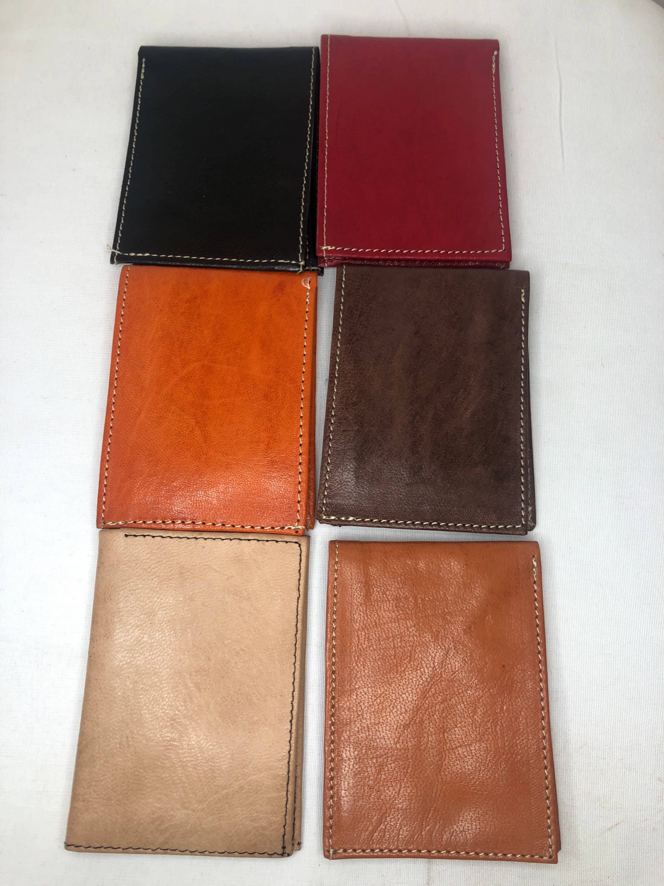 Carry cards or cash in style with this tiger print leather card holder. Made with hair on hide leather, the animal hairs are visible. This is a luxurious way to carry cards or cash! Holds up to 8-10 standard business cards or up to 6 credit cards. Features stud detail, choose from either gold stud (two on each side) or silver stud (three on each side). The backside of the leather is visible on the interior. Details: Genuine calfhair leather 4.5" w x 2.5" h