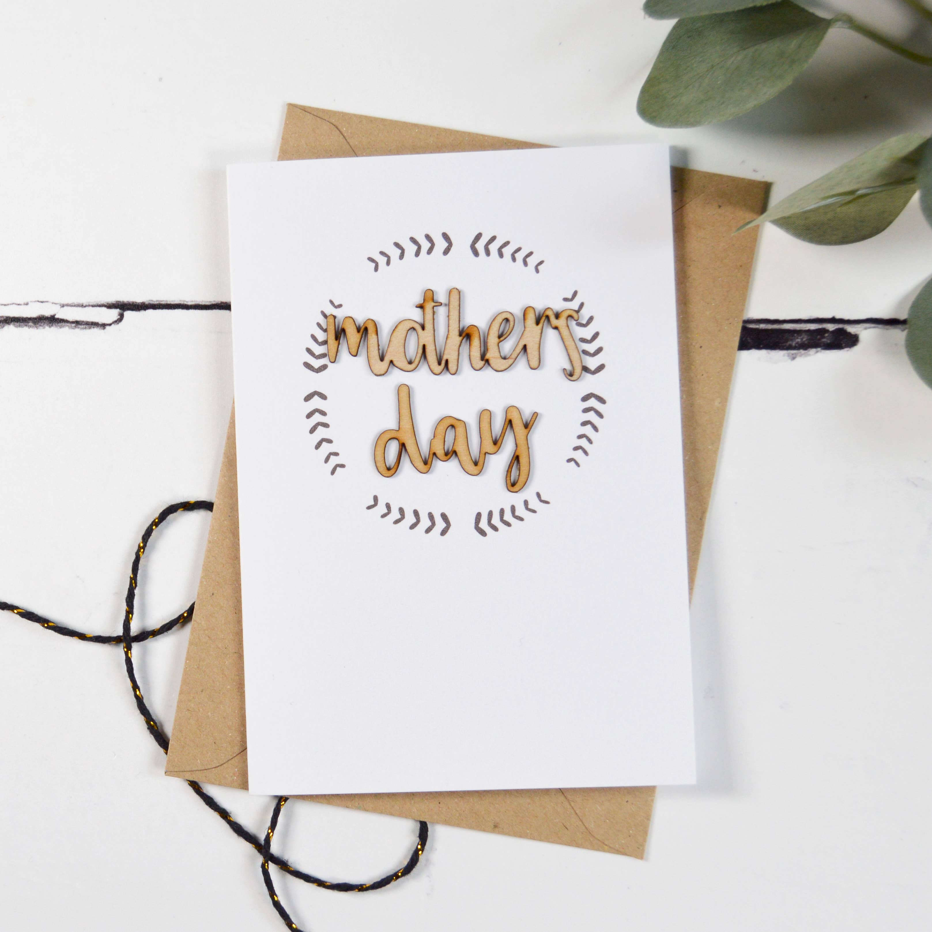 The sentiment is printed onto a 300gsm white card and finished with 0.8mm thick laser cut birch wooden shape. Each card comes with a kraft envelope, and are supplied naked. Cards measure 10.5cm x 14.8cm, and are blank inside. Available in packs of 3.