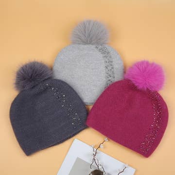 Wholesale Double Pom Hat - Black