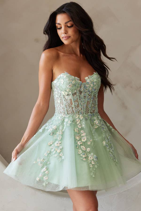 Strapless Sweetheart Lace Fitted Short Dress