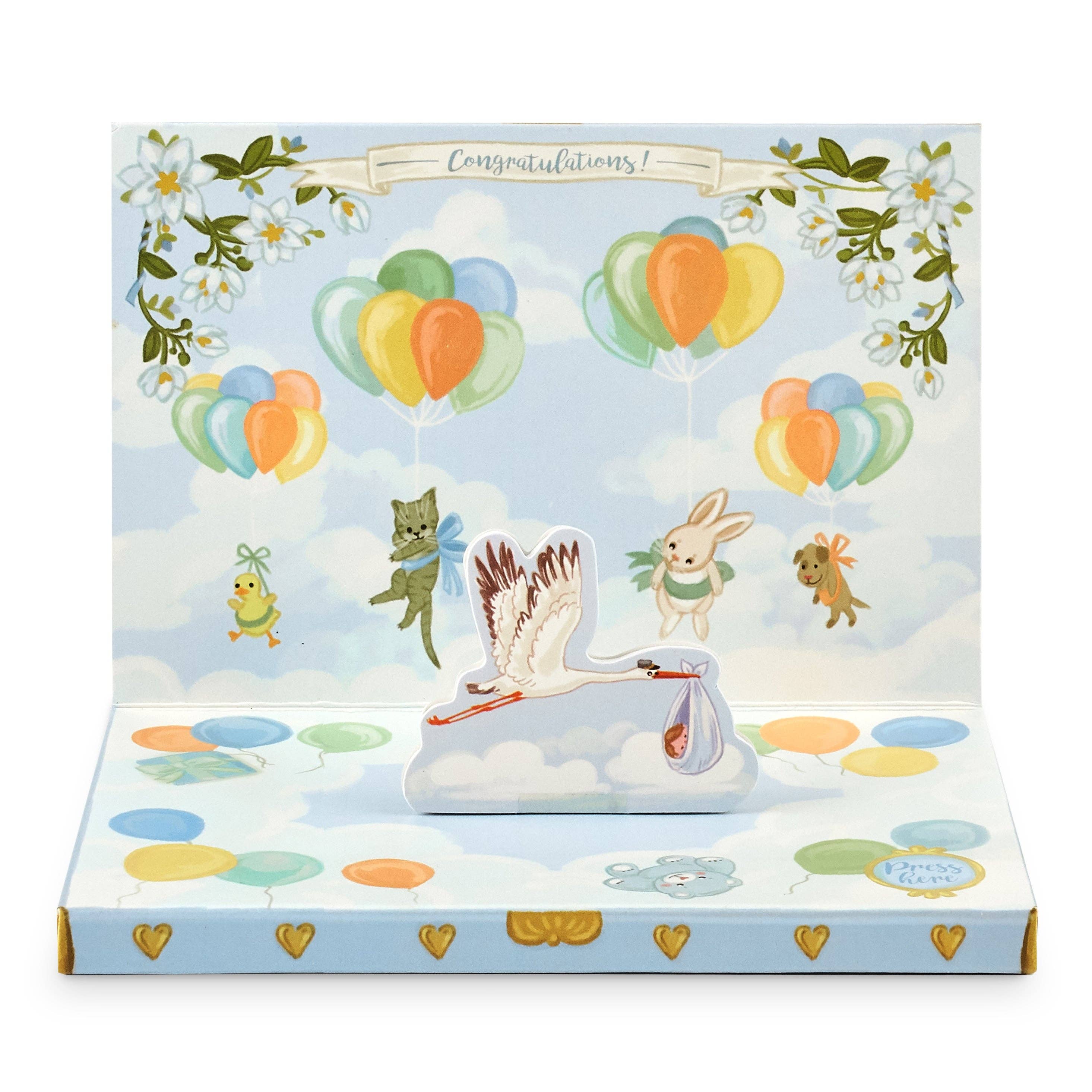 MUSIC | ‘Entrance of the Gladiators’ - Julius Fucik Open the Music Box Card to reveal a beautiful musical storytelling scene. Listen to the music and watch the elephant magically career around and around to the classic circus theme. The front of the music box card looks like a conventional card, but opens to reveal a magnetic dancing character which moves around the card to the music when you press play. With a space to write a personal message on the back, every card also comes with a kraft board envelope. Packaged Dimensions: W17 x H12cm x D1.5cm, approx 108g Card Dimensions: W16.3 x H11.3cm x D1.5cm