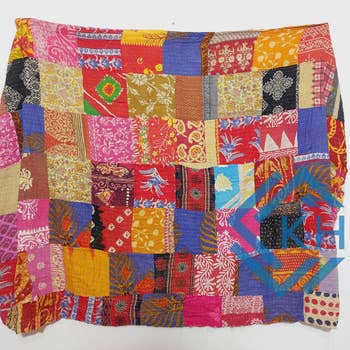 Add that touch of color to your lounge/bedroom with this Vintage Hand Made Kantha Bed Spread/ Throw/ Quilt from Linen Connections. Key Features: Material - 100% Cotton. Size - King (90 inches * 108 inches). Plain cotton fabric at the back adds extra comfort to the quilt. Handcrafted softly quilted handmade by artisans in India. The entire quilt is painstakingly hand embroidered with an end number of straight running stitches to create a unique product, one of a kind (No two are alike), thus it’s a perfect GIFT too (Wedding Gift). All these make them a Vintage Kantha Quilt. Whether you drape it over your bed, couch, or favorite chair, it’s sure to make a statement and breathe new life into your decor. Bright colors add vibrancy to your living space/bedroom. Buy a few to add a kaleidoscope of color to any room. Purchasing Fairtrade Kantha Quilts creates employment opportunities and sustainable life for the women artisans and their families.