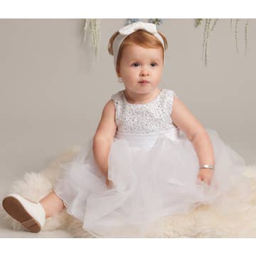 Wholesale Baby Girl Bow Patched Design Long Sleeves Full Moon Christening Mesh Formal Dress