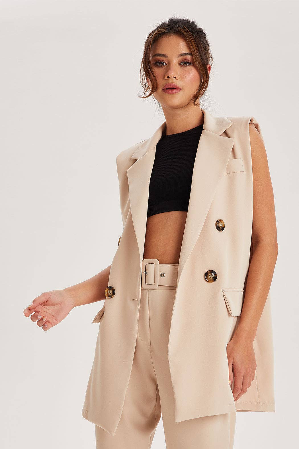 The blazer has long sleeves that are slim-fitting, creating a sleek and modern silhouette. The sleeves are designed to be worn pushed up or down, depending on your preference. They are also the perfect length to allow for layering over a shirt or blouse. Overall, this open-front, long-sleeved, casual, fitted-style blazer is a versatile and stylish addition to any wardrobe. It is perfect for dressing up or down, depending on the occasion, and can be worn with a variety of outfits to create different looks. Approx: Length:24 in, Bust:36 in, Sleeve: 23in, Shoulder: 18in.