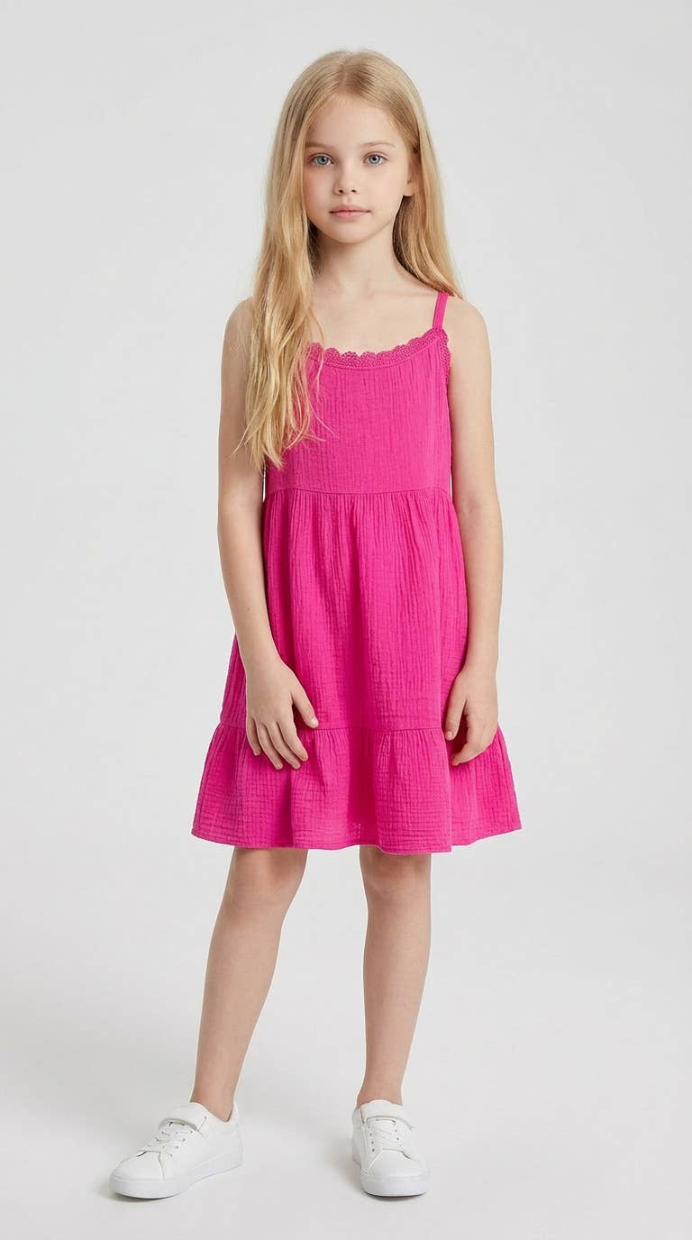 Bohemian floral dress with lace and adjustable straps for girls