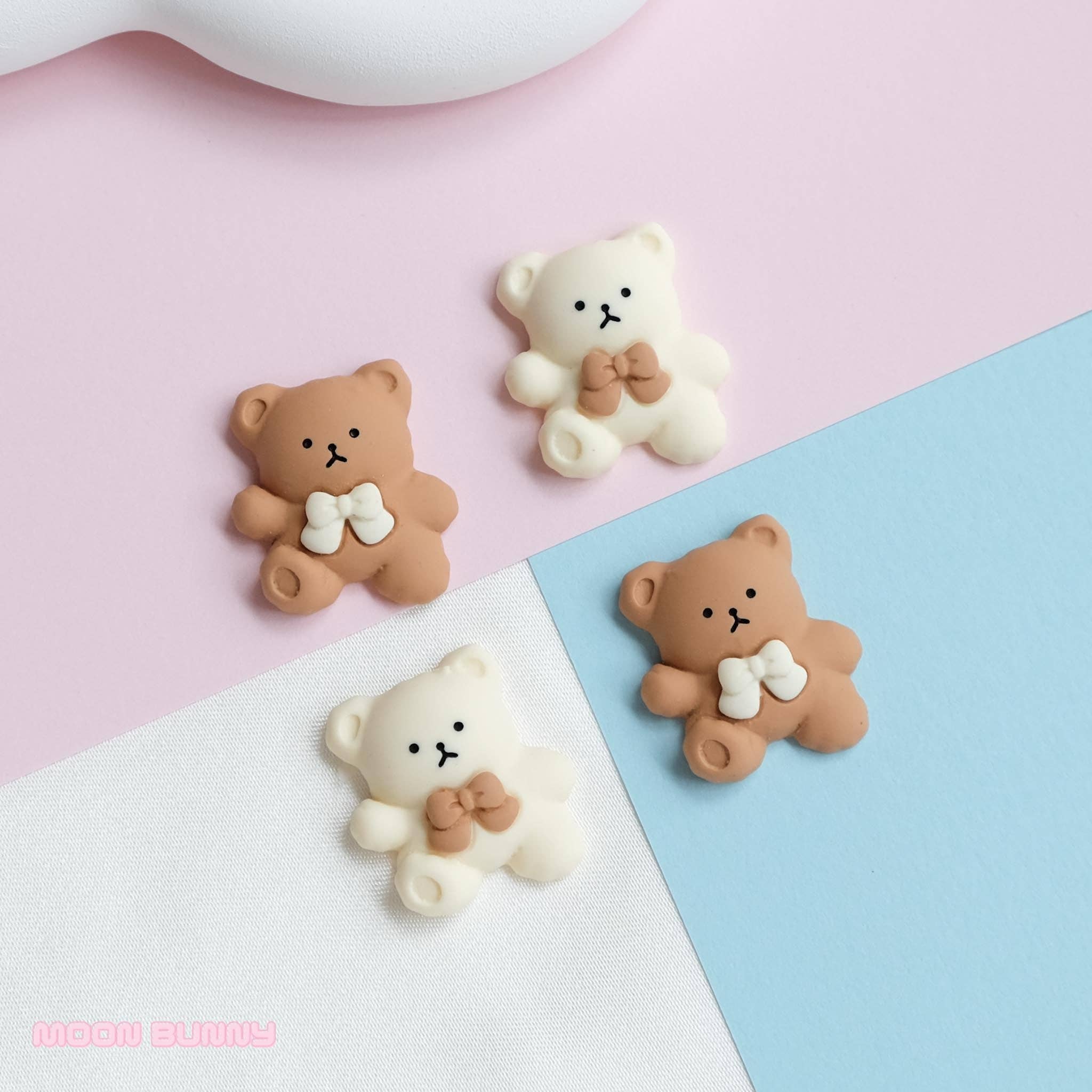 Style: Flat back Size: 2cm x 2cm Material: resin Texture/finish: matte This is a pack of 4 random charms. If you would like specific colour or style, please leave a note. What can you do with these charms? There are many ways to use these charms. Below are a few common ways of using them - earrings - key chains - fridge magnets - picture frame decoration - making hair clips, hair bands, claws - Dollhouse projects - Desktop decoration - decoden, or decorating phone case