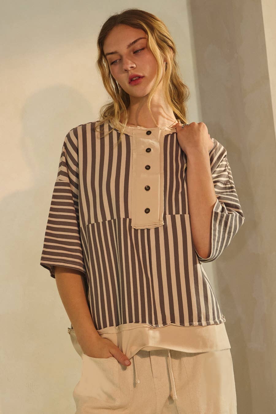 Wholesale Solid Striped Blouse