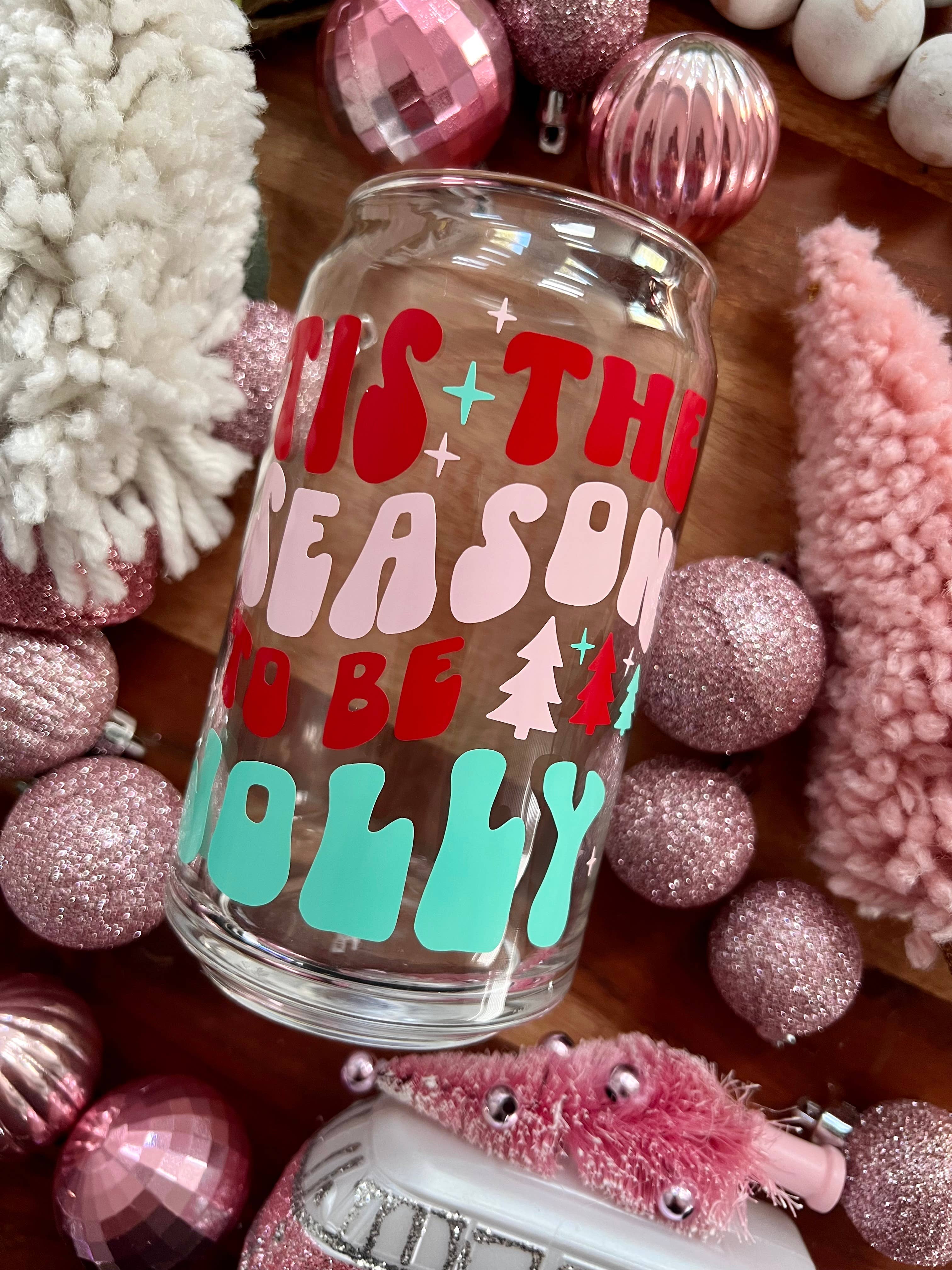 Holly Jolly Mama, Retro Christmas, Beer Can Glass, Coffee