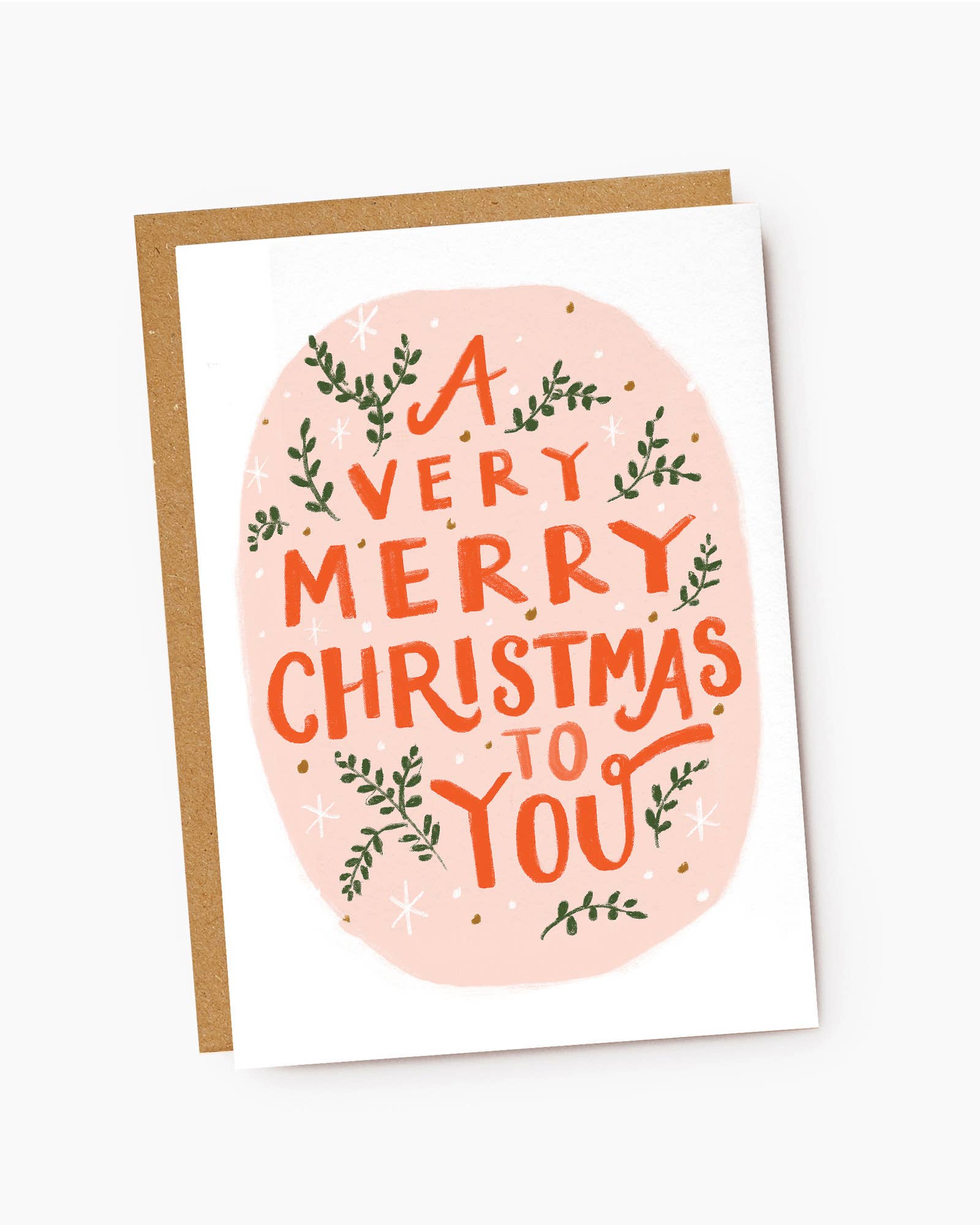 5"x7" greeting card printed on matte 90lb cardstock. Blank inside. Paired with a kraft envelope and packaged in a clear cellophane sleeve.