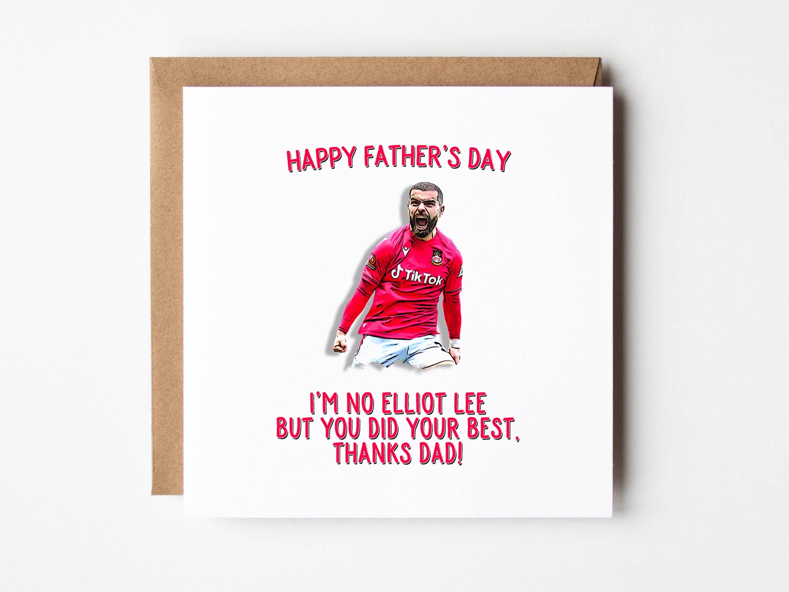 A handmade Father's Day card printed on beautiful thick cardstock featuring Brentford's Ivan Toney. The text on the card reads "I'm no Ivan Toney but you did your best" Please note that any personalization will be removed from the cards ensuring that they apply to everyone. Our cards are blank on the inside and measure 6 x 6". They are supplied with a brown kraft envelope, these will be packaged in biodegradable cello sleeves ready for point of sale.