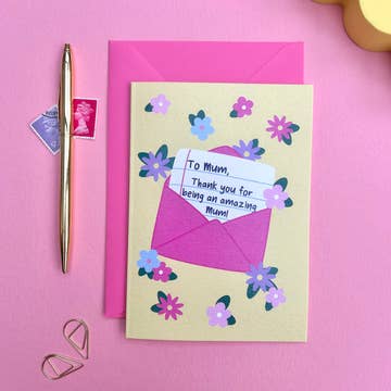 The 'Love You Mum' Pink Stripe Blue Foil Mother's Day Card from Oh Squirrel is a wonderful way to express your love on Mother's Day. This card, with its personal touch of Katie's handwriting, embodies the brand's ethos of championing positivity and kindness. Oh Squirrel, a brand based in London, is known for its creativity and positivity, and has been featured in numerous publications. Make your mom feel special this Mother's Day with this beautifully crafted card.