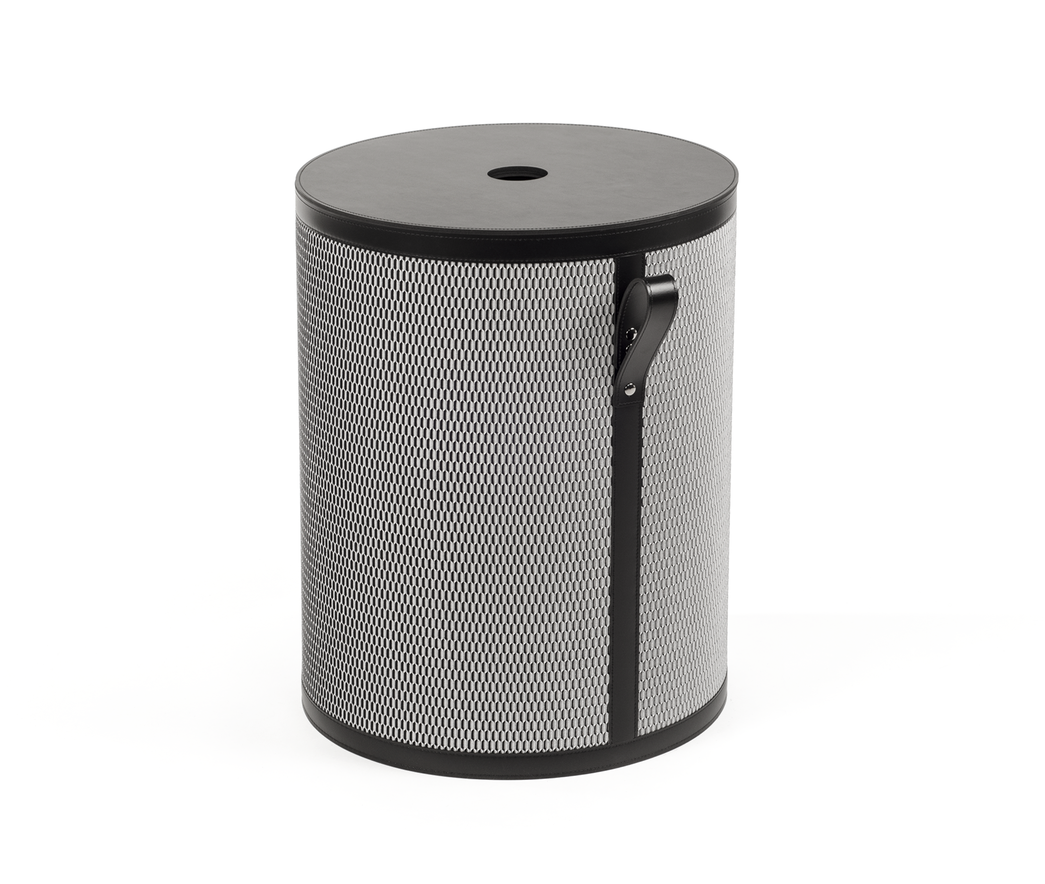 Il nostro cesto per la biancheria rotondo Demetra è splendidamente intrecciato a mano. Il design è realizzato in modo sostenibile utilizzando una speciale pelle legata creata dalla lavorazione di ritagli di pelle conciata al vegetale. Il suo trattamento lo rende resistente all'acqua e alla luce, permettendone l'uso anche all'aperto.