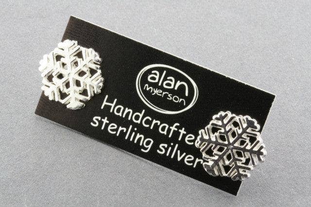 Hand crafted sterling silver cutout snowflake stud earring Approximate Weight: 1.8 g approximate Dimensions: 9 mm diameter