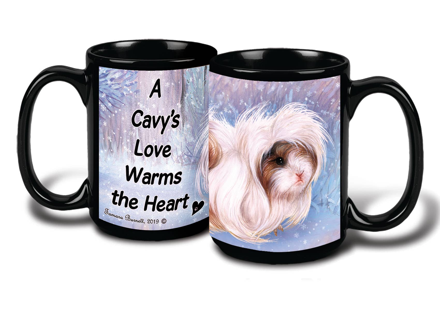 Guinea pig Himalayan garden party 15 oz black coffee cup mug, dog and cat pet gift, for extreme animal lovers! These mugs are made of ceramic and measure 3.5" x 5" x 4". Mugs hold approx 15 oz of your favorite beverage. They feature a beautiful image of your favorite dog breed by renowned artist Tamara Burnett.