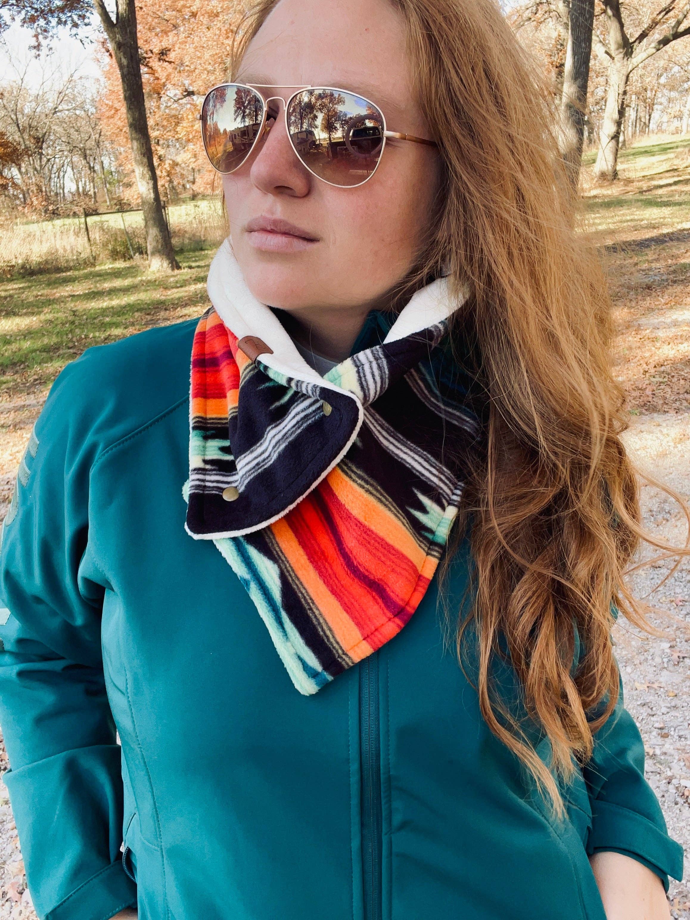 The Callie Cowboy Cowl is designed for ultimate comfort and practicality. With a soft fleece exterior, this cowl provides reliable warmth while offering two cozy interior options: Sherpa for extra insulation or Minky No Hay for a smooth, plush feel that resists hay, brush, and pine shavings—perfect for those working around animals. Featuring safety snaps for a secure, hands-free fit, the Callie Cowboy Cowl can be worn two ways: snug for maximum warmth or relaxed for a more casual, laid-back look. Whether you’re out on the ranch or heading into town, this cowl has you covered. * Exterior: Soft, durable fleece * Interior Options: Warm Sherpa or smooth Minky No Hay (designed to resist hay, brush, and pine shavings) * Closure: Safety snaps for a secure, no-fuss fit * Care: Machine washable for easy maintenance * Wear It Two Ways: Snug for extra warmth or relaxed for a more casual fit Plus, with our Lifetime Guarantee, you can trust that the Callie Cowboy Cowl is made to last.