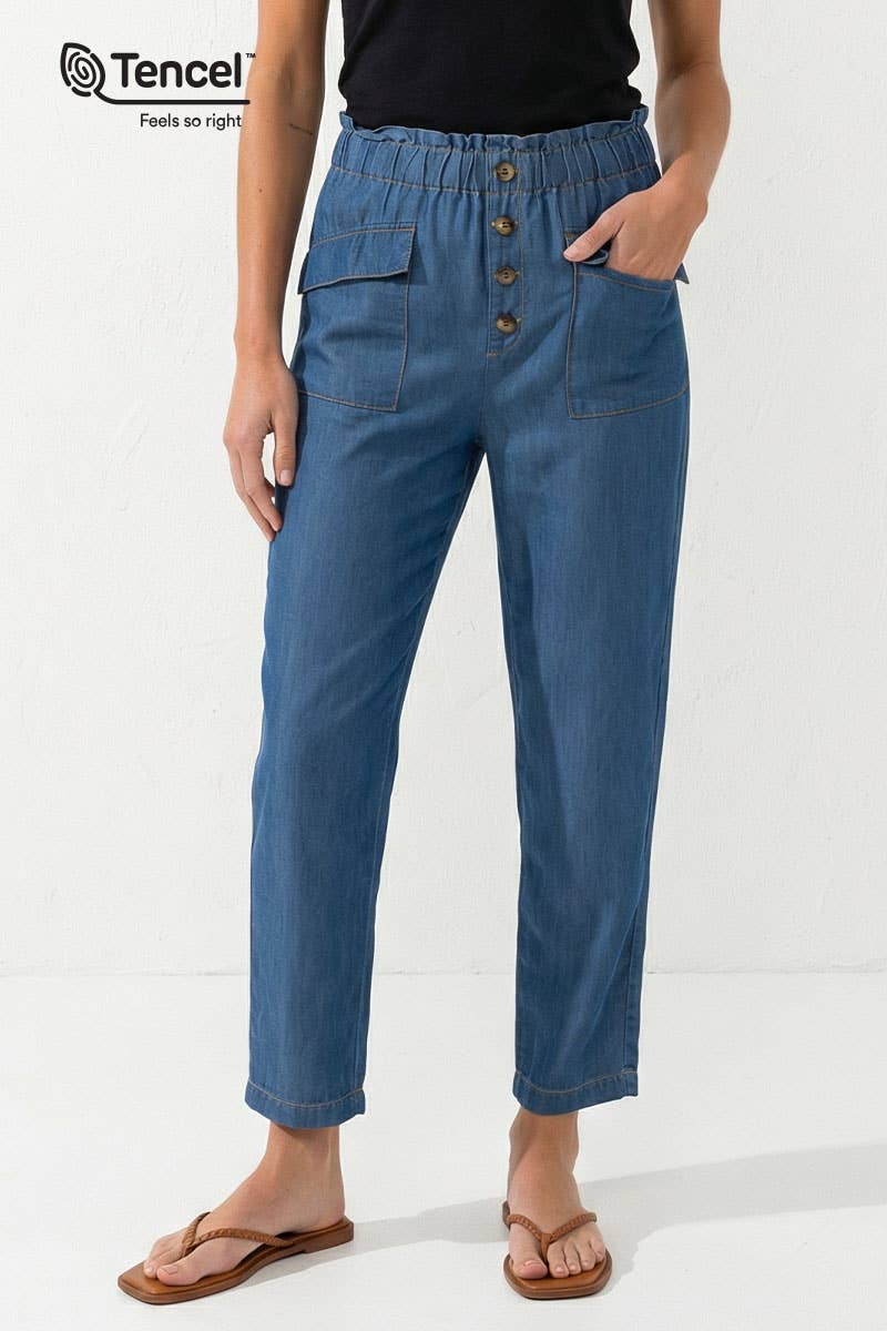Faux Suede Mini Button Down Paper Bag Skirt