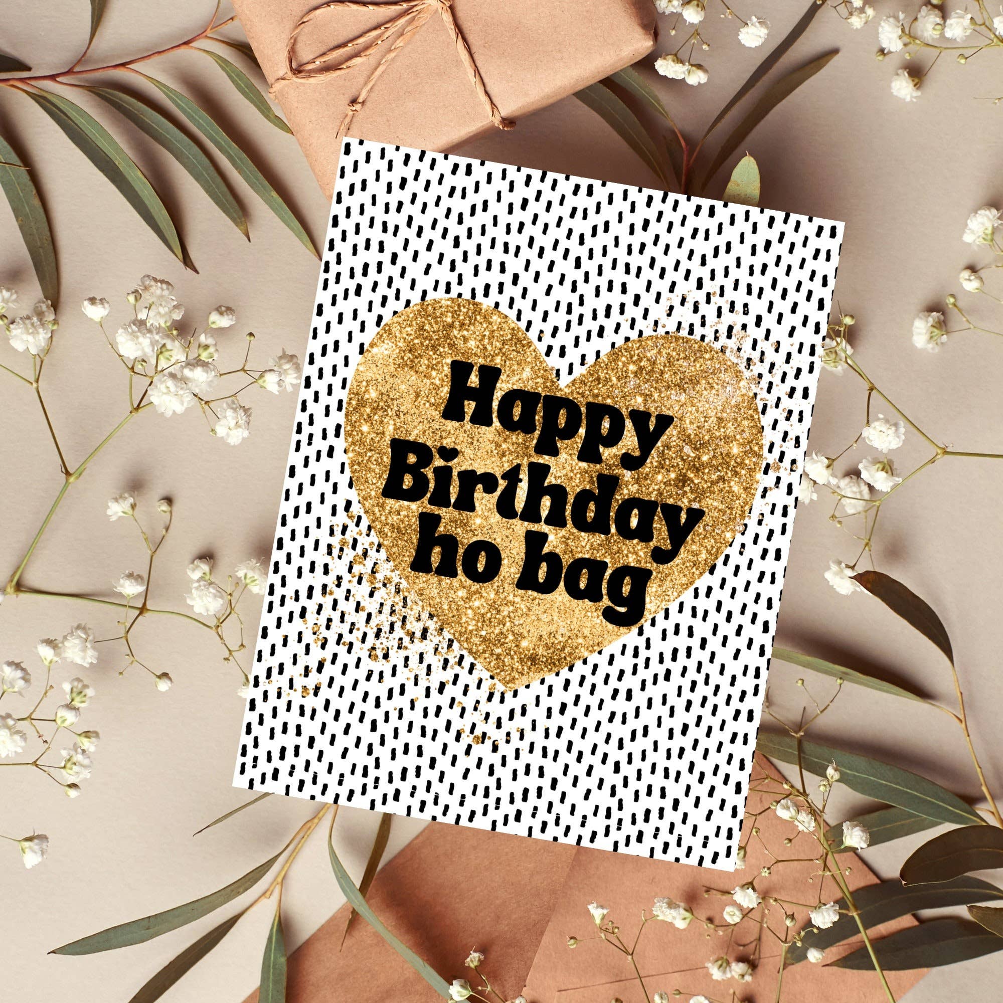 - Front: whore - Inside: blank - A2 card size (4.25in x 5.5in) - 100 lb Lynx cover uncoated cardstock - Includes extra kraft envelope - Card + envelope wrapped in an unsealed cello sleeve (please let me know if you would like them sealed, happy to do it for you!)
