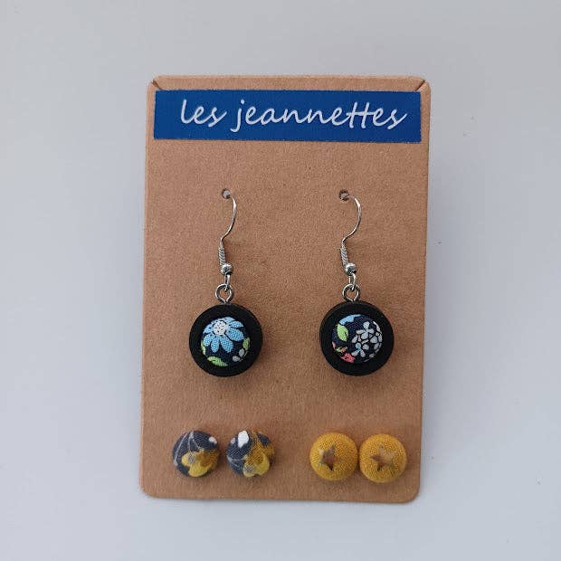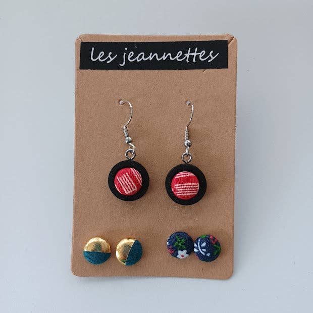 Marinettes are handmade stud earrings. They are made of lead-free, nickel-free stainless steel and fabric.