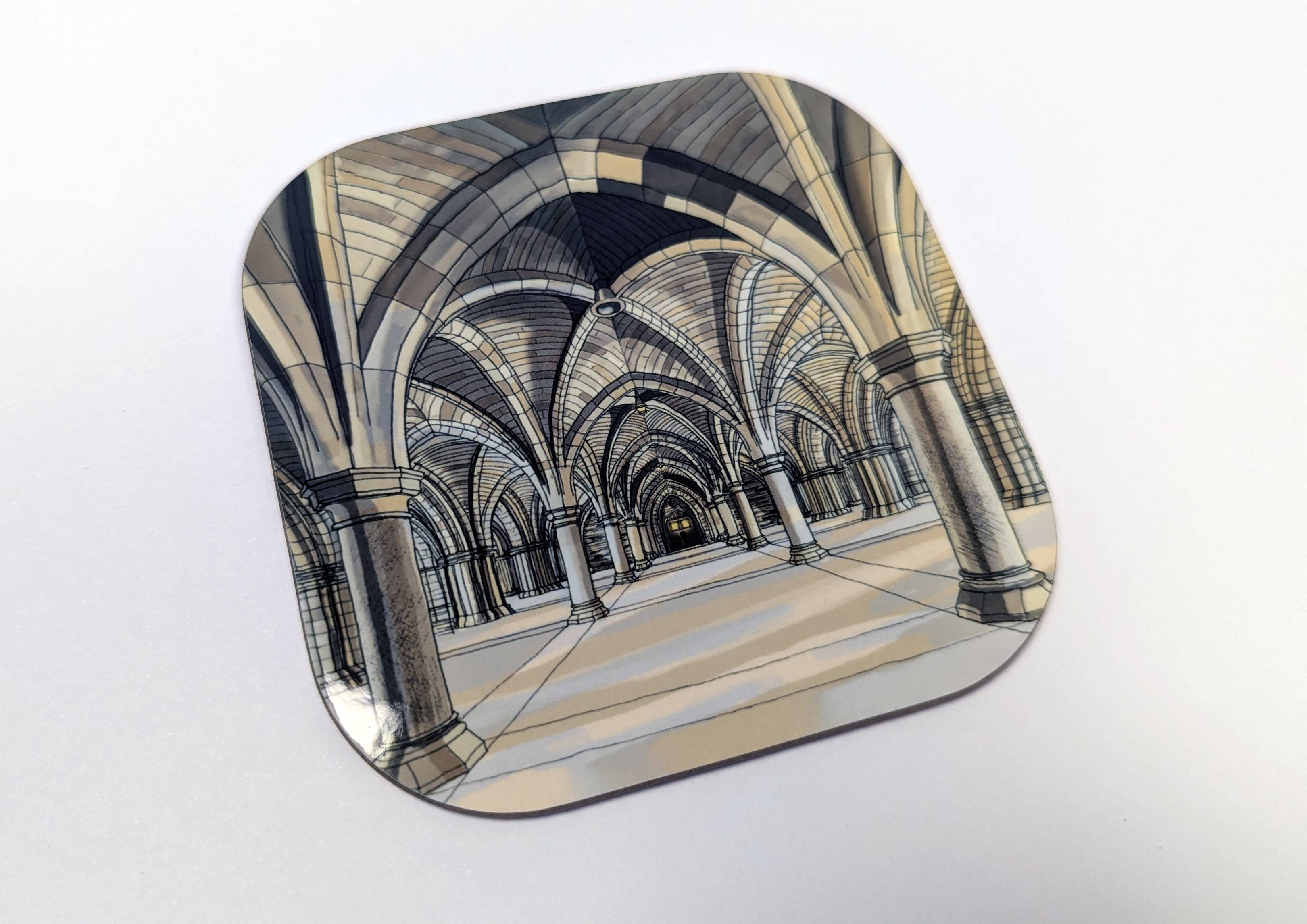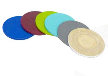 Sacred geo 4" round alder wood coaster with cork feet.
