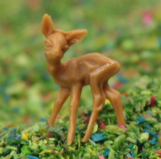 Styled after the 1950 plastic Reindeers that were produced in Hong Kong back in the 1960s. They was a certain retro look to hong Kong produced minis, and we found a company in the UK that has created these minis! Very nicely produced, miniature reindeer figures - Set of 2 pieces. - Great Dollhouse & Holiday Miniatures! 1. Produced from plastic and hand-painted 2. Handcrafted - No figure is exactly alike 3. Size: 1.5" tall and 1" long (2" tall at the top of the antlers) 4. Sold in a set of 2 pieces per pack 5. See options for 3 or 10 pack bundles 6. Imported directly from the UK These come directly from an old family-run company in Europe. These are a set of unique miniatures that are brand new old stock! Not for children under 5.