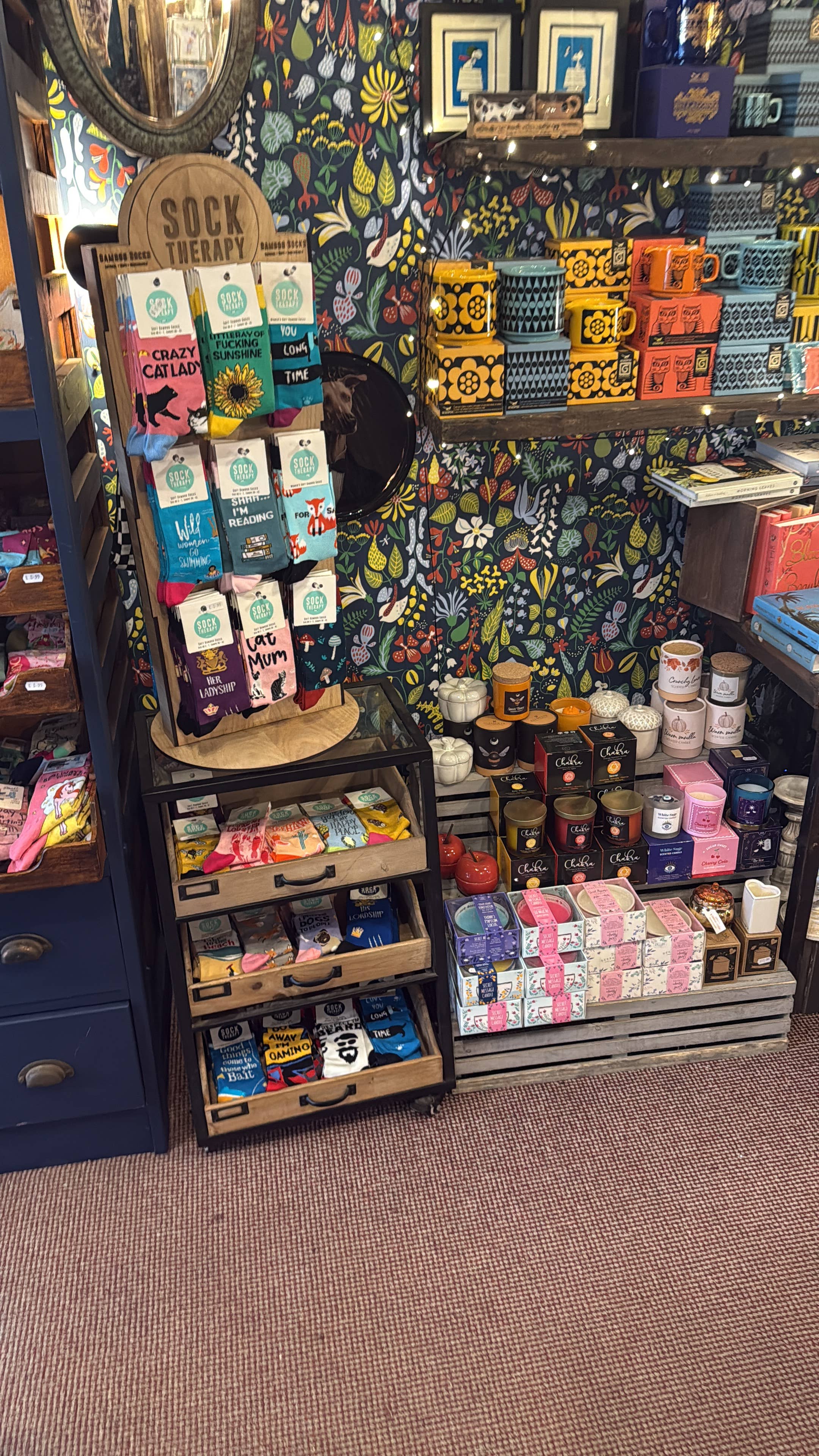 Socks are great quality . Stand and socks are fun and cheer up this section of my shop .