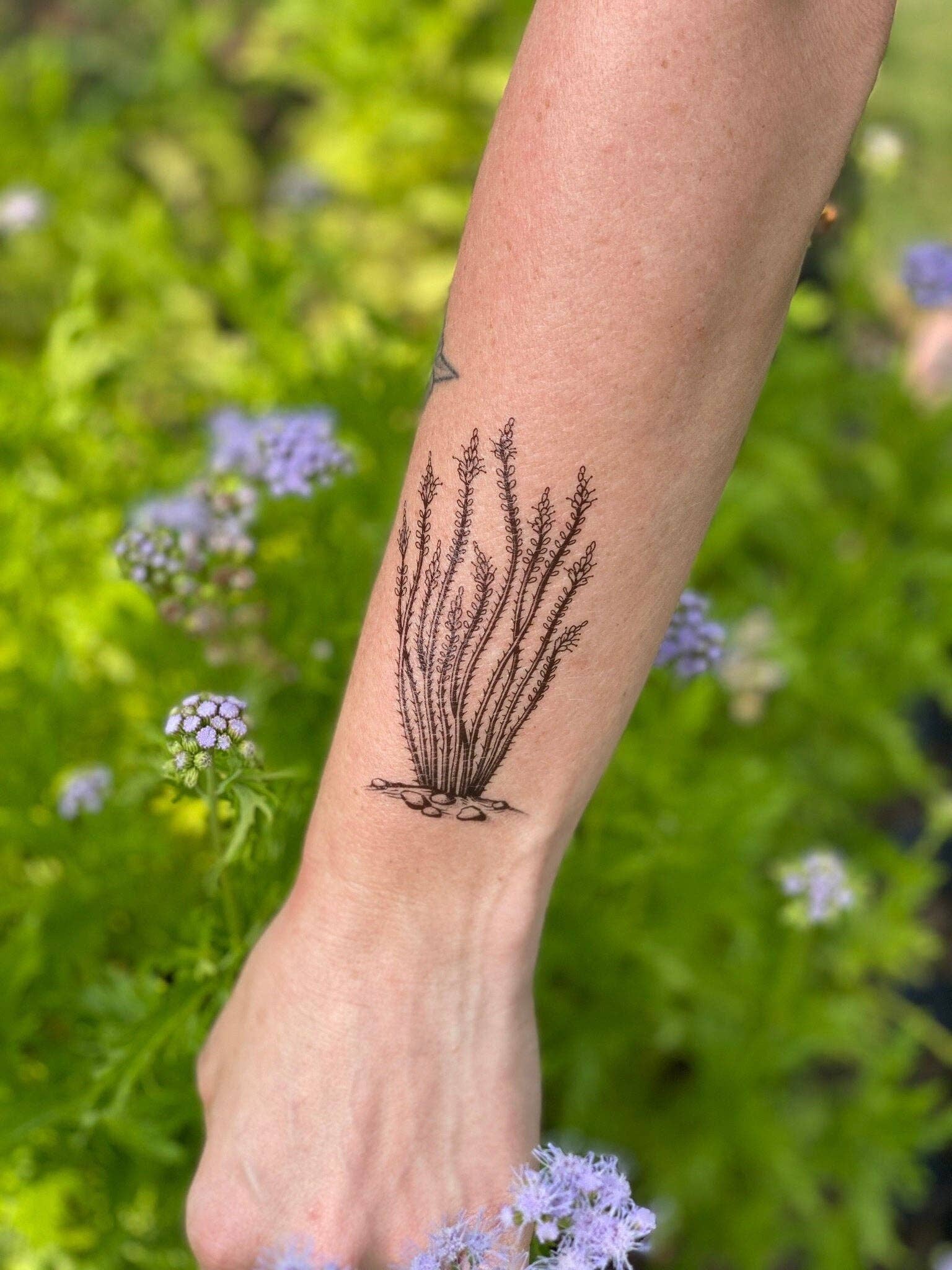 Ocotillo temporary tattoo! This original, hand-drawn artwork features a healthy flowering ocotillo plant. This tall stunning beauty stands out in the desert with its red flowers that co-evolved with hummingbirds! You may see one if you venture through desert regions of the western continents. It is often used as fencing in these areas because of the vertical rigid spiked branches. This bold black line design measures just over 3.5 inches tall. Ocotillos have been said to symbolize protection and acceptance. What meaning does this desert plant hold for you? All original designs by Allison Wilcoxen in Austin, Texas. Apply with water • Lasts 2-5 days! • Water resistant! • Comfortable and skin-safe!