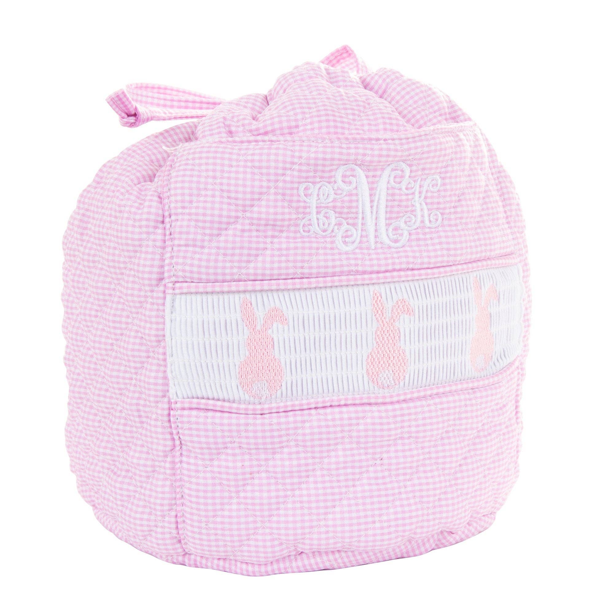 This smocked sailboat garment bag made with quilted blue, 100% cotton gingham is just about the cutest thing you have ever seen! Perfect for carrying the Christening garments to and from church and for that first sleepover at Grandmother's house! It includes a zip closure from the top down one side and snaps on the flap to hold together when folded. Handles make for easy toting! * Material: Gingham * Dimensions: 17" x 42" (unfolded), 17" x 21" (folded) * Spot clean with damp cloth.