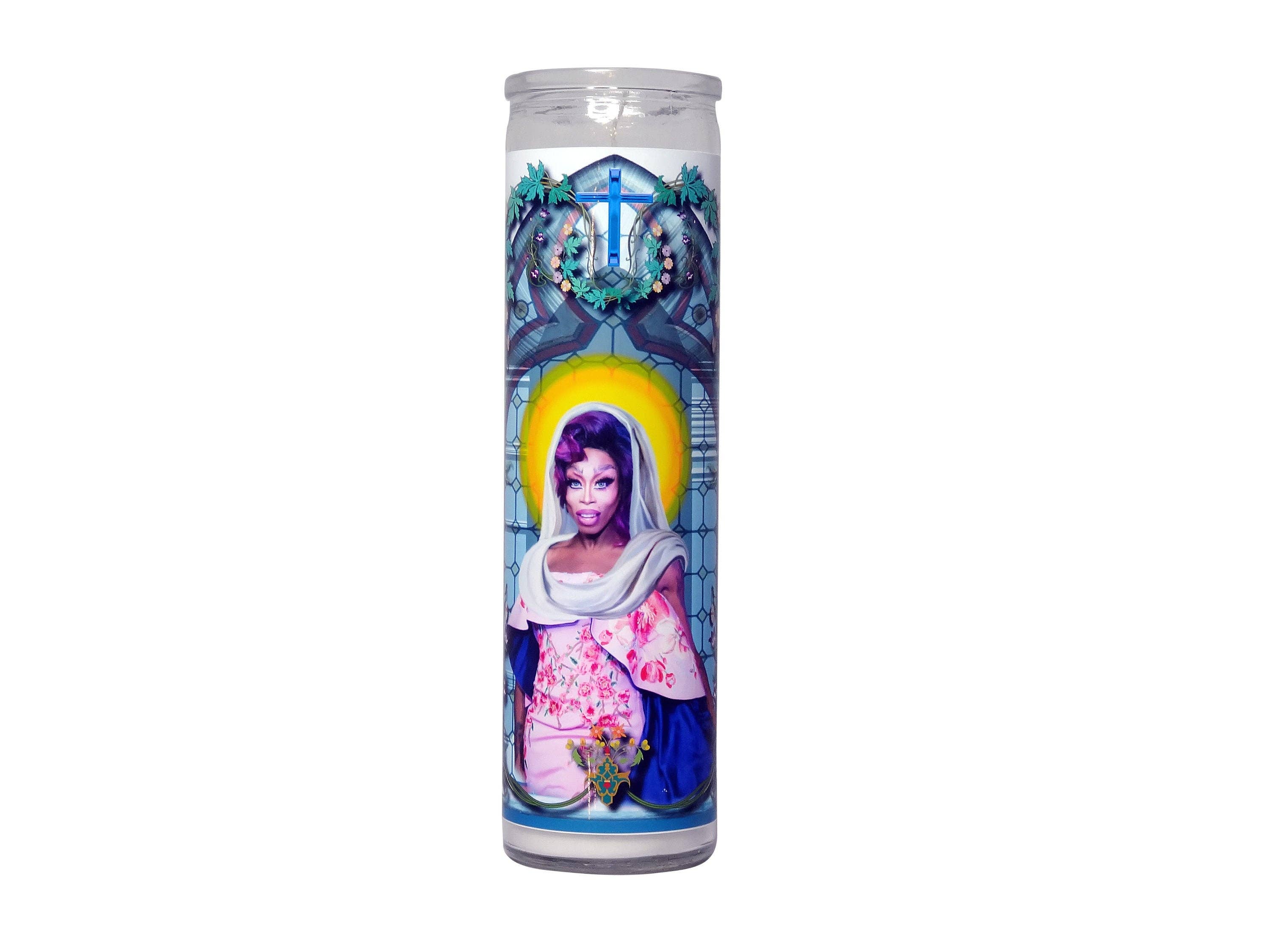 Oh Honey, shantay you pray! Saint Jujubee Prayer Candle. Ahhh men. Saint Celebrity Prayer Candle. White wax. 8 Inches Tall. Glass Container. High Quality Gloss Vinyl Label.