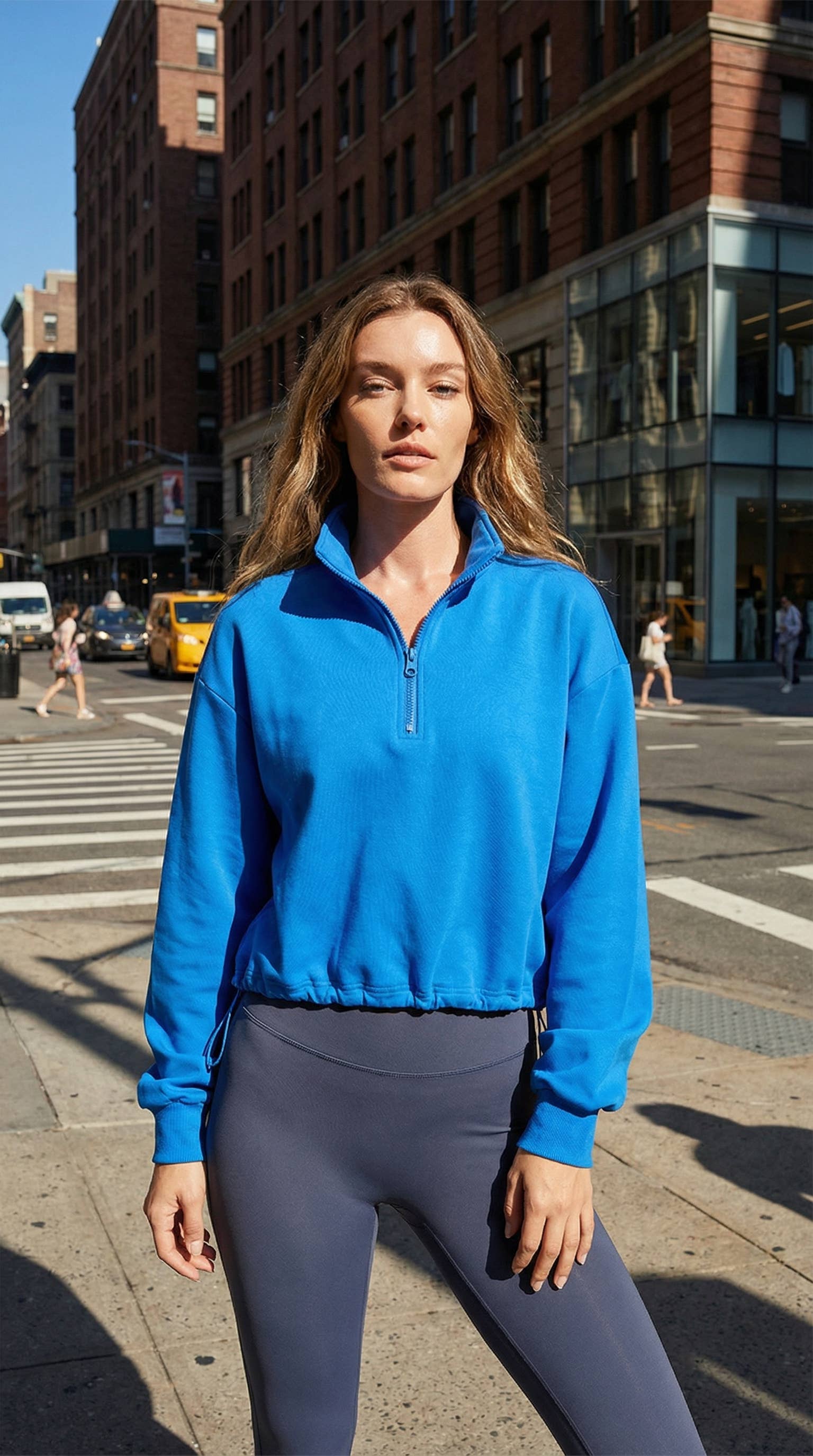 It’s the perfect cropped workout sweatshirt for cool days prior to warming up at the gym or throwing on post-workout to run the town with your girls.