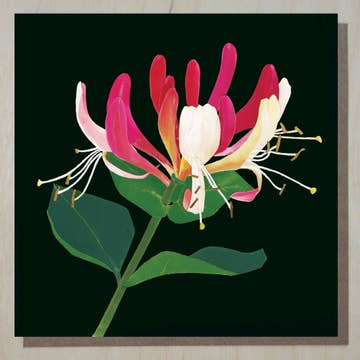 Striking and vibrant honeysuckle flowers against a dark background. Designed and beautifully printed in the UK on gorgeous, sustainably sourced board. 15cm x 15cm with 100% recycled kraft envelopes, supplied unwrapped with an easy-peel removable label holding card and envelope together. Cards can also be supplied in biodegradable cellos, please let me know if you would like this option. Blank inside for your own message. Windsock Press
