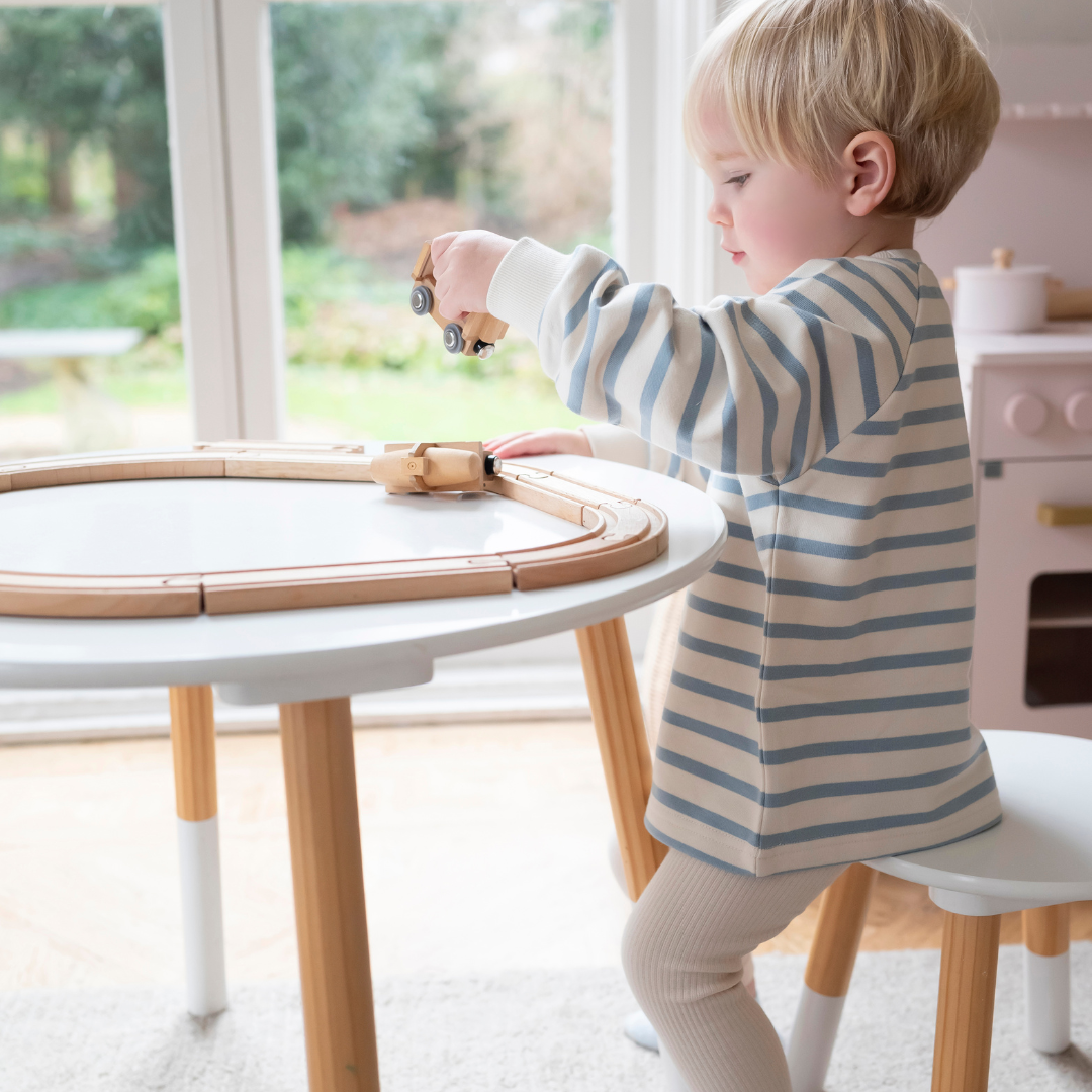 The soft sweatshirt in blue with a cute croissant print is perfect for small treasures. There are elastic rib cuffs on the sleeves. Thanks to the cotton blend, the sweater is pleasantly soft on the skin. For sizes 74/80 to 86/92, there are two hidden snaps on the neckline, which can be used to expand the head opening so that it can be pulled over. Made from 80% cotton, 20% polyester Rib cuffs: 95% cotton, 5% elastane