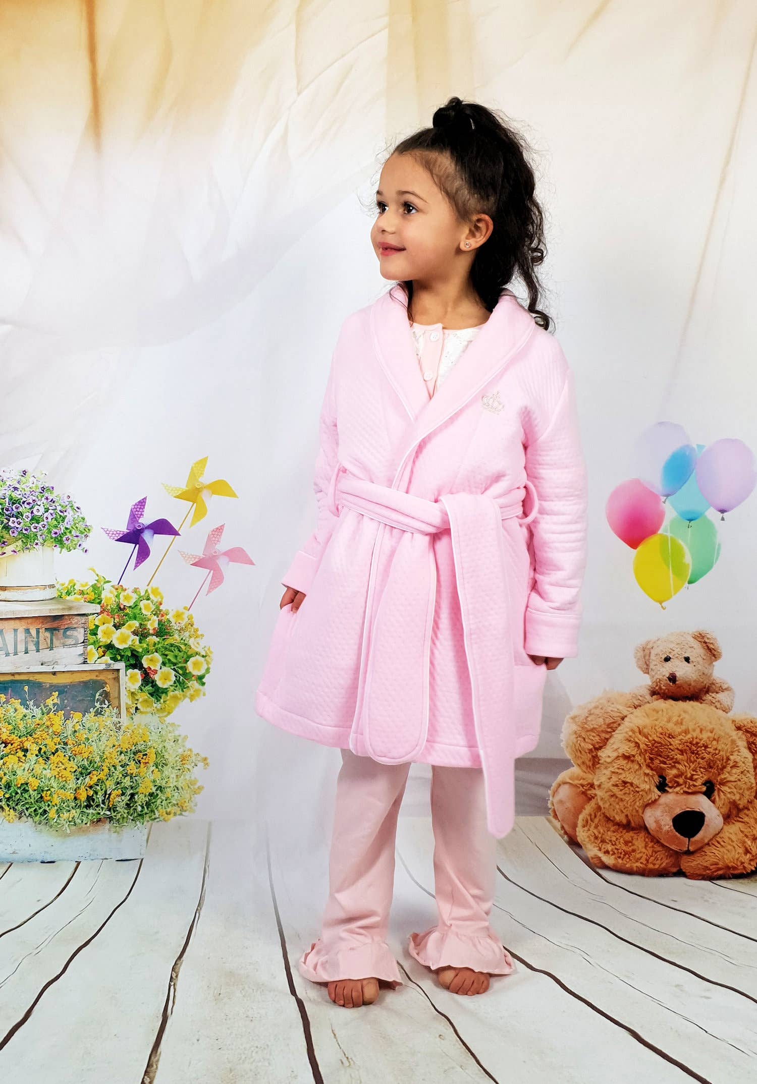 Our bathrobes for children made of velvet sponge are decorated with beautiful embroidery. Each embroidery represents a poetic and magical crowned animal. With its pompom hood, our bathrobes for children are perfectly suited. A belt with belt, a pocket, and 2 rubber buttons adapted to the child's small hands. An easy closure to strengthen the child's autonomy! Ideal at the end of the bath, they are also ideal at the end of the pool and perfect for the beach! Our customizable bathrobes for children are available in two sizes: - 2/4 years - 4/6 years * Dimensions: 54 x 96 cm 2/4 years and 60 x 114 cm 4/6 years * Material: 100% OEKO-TEX® velvet sponge (the OEKO-tex label certifies the absence of substances harmful to health and the skin) * Recommended age: 0-6 years * Care: Machine wash at 30°C, tumble dryer and soaking not recommended * Technical characteristics: button closure and tie belt.
