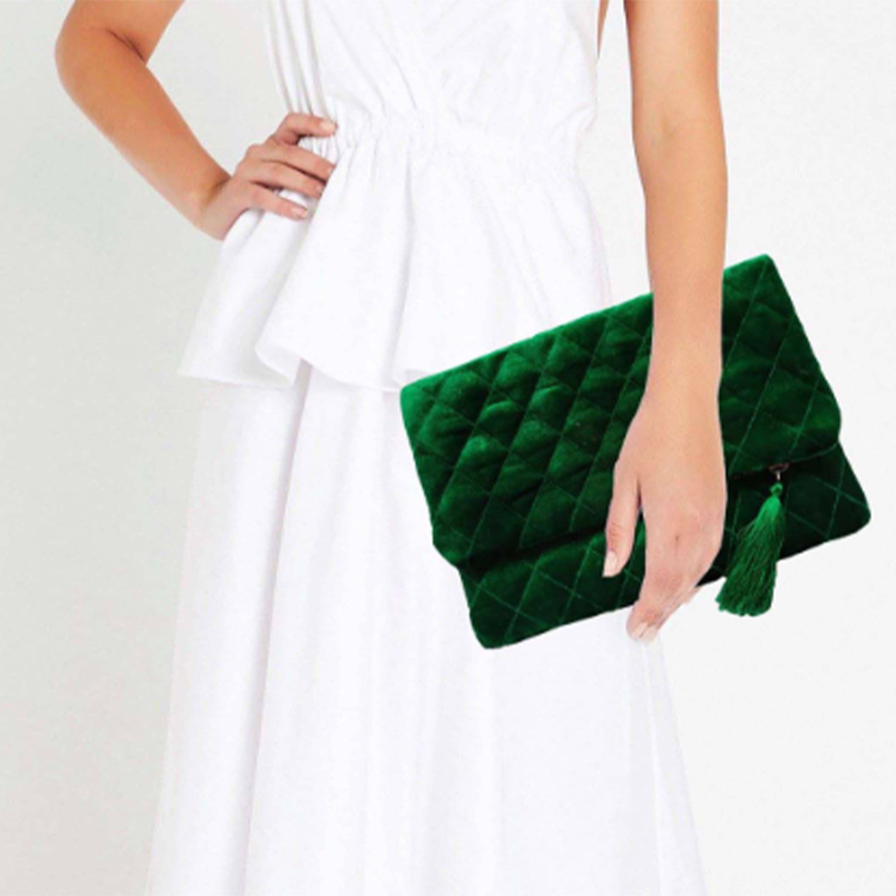 Crafted from luxe emerald green velvet, this modern minimalist to make it compact and easy to carry. The satin lined interior has enough space for cell phone, keys and make up essentials. With an interior zip pocket, this is a smart and functional bag. Magnetic buttons for closure. The quilting makes it on trend and super luxe. ————————————————————————————————————— This pouch can be custom made for you. Ask about size and color. ————————————————————————————————————— Details - Made from soft plush velvet - Satin lining - Interior pocket with zipper - Carefully hand stitched with special thread - YKK zipper fastening along top - Spot cleaning Measurement 13"H x 11"W Inches ************************************************** How to Order 1. Please select velvet color from drop down menu. Please refer to picture 5. 2. Please select monogram font option from drop down menu. Please refer to picture 7. 3. At checkout please mention the following details - ► Embroidery thread color for the letters from the options shown in picture 6. If no color option is mentioned, letters will be embroidered in gold thread. ► Monogram letters in the exact order as you would like them to appear on the clutch ************************************************** ► If you like a customized bag or if have any questions about the product, please send me a message and I will be happy to work on it. ► If ordering for a wedding or other important deadline, please let me know your important dates and/or travel plans and address so I can ship your items to the appropriate address! For more questions? Message me. Shipping Cost: FREE SHIPPING anywhere in the world; usually ships within 4 to 5 business days Guarantee and Exchange Policy: 30 Day exchange and money back guarantee. For policies, please Click Here Need Help? Contact Us