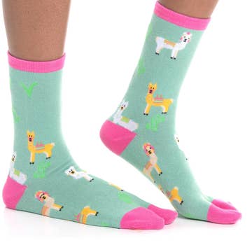 V-Toe Split Toe Novelty Socks Llama Green Big Toe Tabi