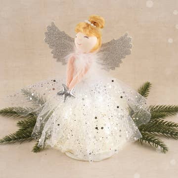 The top of your tree feeling a little bare? We've got just the thing! Let our Felt Angel Tree Topper bring your tree to life as it sits atop overlooking all your holiday festivities. Featuring layered wings and tiered detailing on the heavenly body, this handmade angel is sure to enhance your tree with more spirit. Felted Wool Azo-free dyes, eco-friendly and non-toxic 14" tall x 7" wide x 3" deep