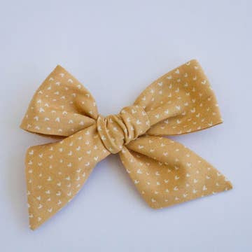 These are the absolutely sweetest bows! We are very excited to have them in our shop now. They are well made with beautiful fabrics.