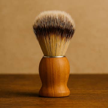This completely vegan shaving brush has been constructed with high-quality, animal-friendly nylon bristles and a handle turned from hardwood. Our faux-badger brush is the ideal animal-friendly alternative for the perfect shave. Brush bristles are made of an extremely fine synthetic material, which offers a similar look and feel to traditional brushes without sacrificing the ability to create a great lather and properly prepare your whiskers for an incredibly easy and comfortable shave. Brushes are individually handcrafted and each brush will display slight variation in shape and character.