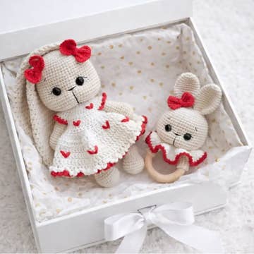 This easy to grasp ring rattle is lovingly hand-crocheted using luxuriously soft yarn derived from the pulp of the organically grown and sustainably harvested bamboo trees. Toys are tested for highest standards of safety (ASTM and CPSIA). Size: 6" in height; Materials: 100% Bamboo viscose yarn, Polyfill.
